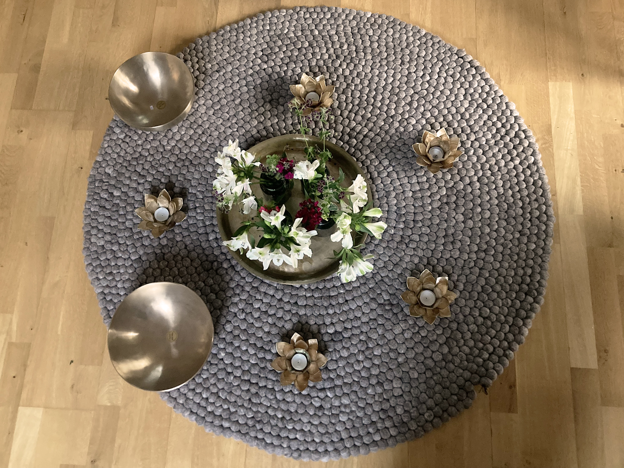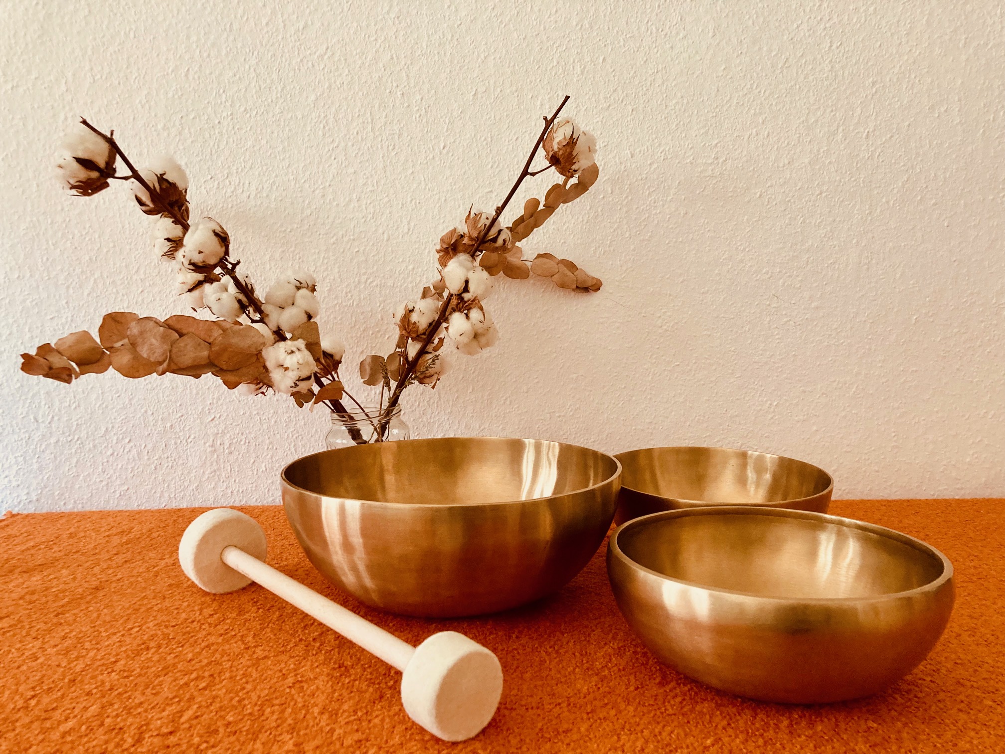 Die Sitzung beginnt mit einem Ankommens-Klang, der über deinem Körper erklingt. Anschließend werden die Klangschalen in Bauch- und Rückenlage auf deinem Körper platziert und sanft angeschlagen, um harmonische Schwingungen zu erzeugen.